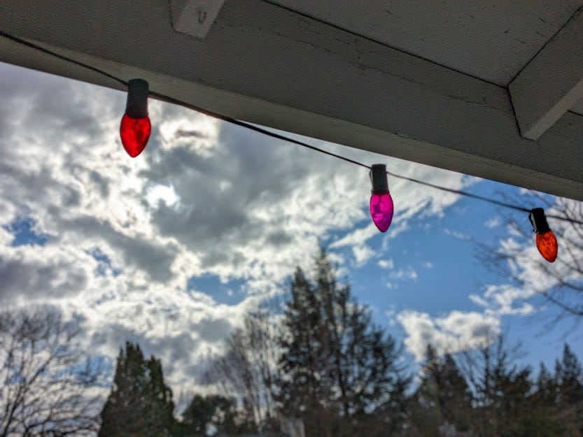 February is already coming to a close but the Christmas lights still hang from our roof.